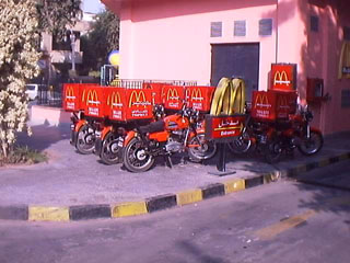 ![]() The McDonalds in Cairo, Egypt delivers to your home! This is their fleet of delivery scooters. |